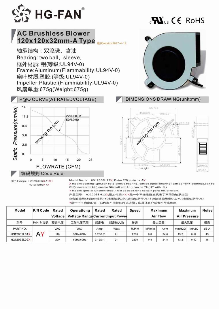 Product Name:120x120x32mm 220V AC