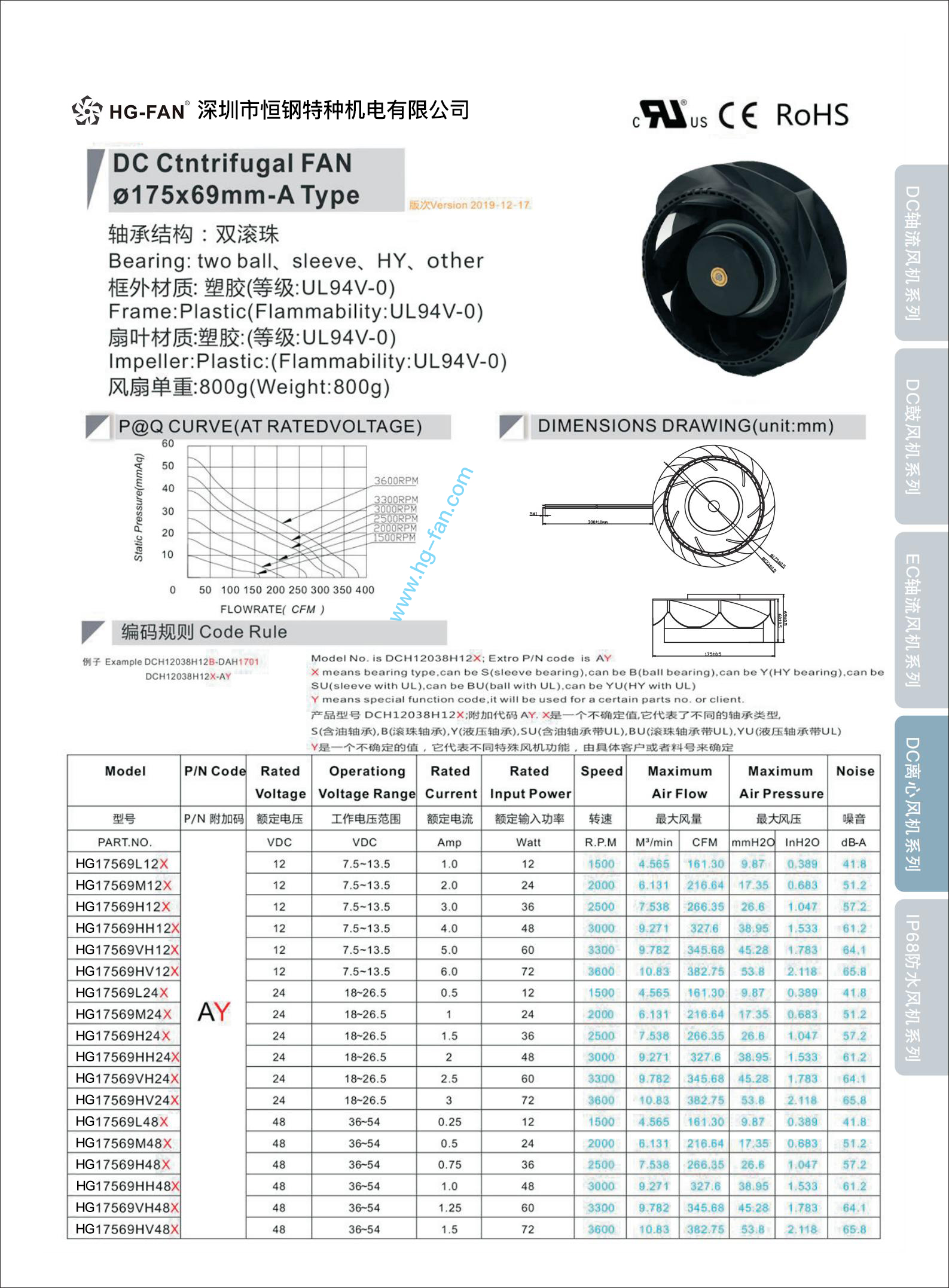 低噪音空氣凈化器離心風機大風量17569離心風機